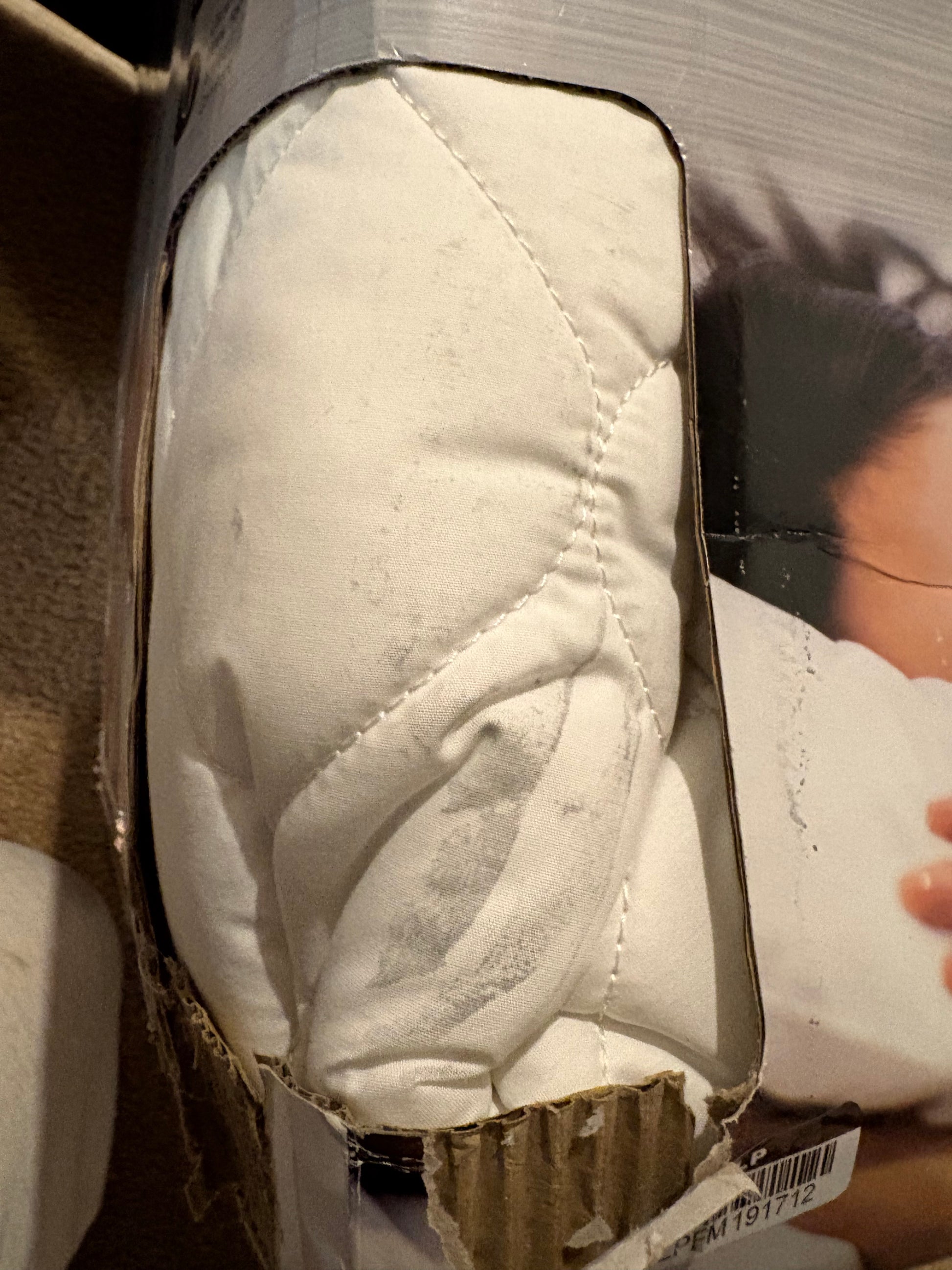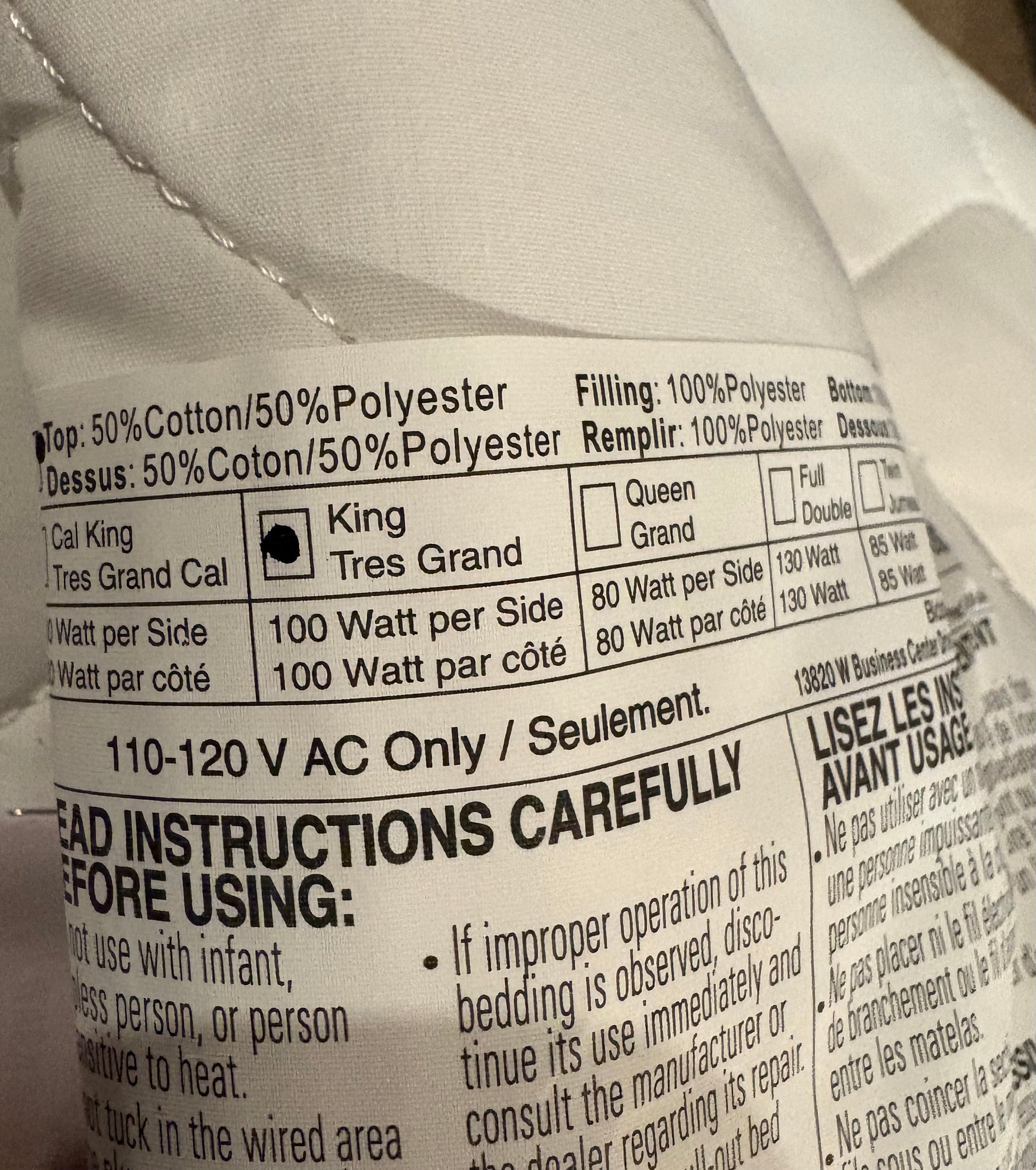 New in box Biddeford King Electric Heated Quilted Mattress Pad in White. Stock photos from the website show a slightly different model, so the controls appear different. Some box damage as well as a dirt spot on area where box is open, pictured.