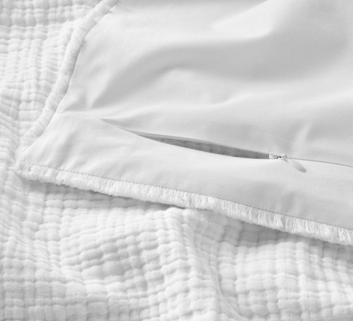 (1) Casaluna King/Cal King Textured Chambray Cotton Comforter Set in White. Comforter set includes one king/cal king comforter & two matching king shams.