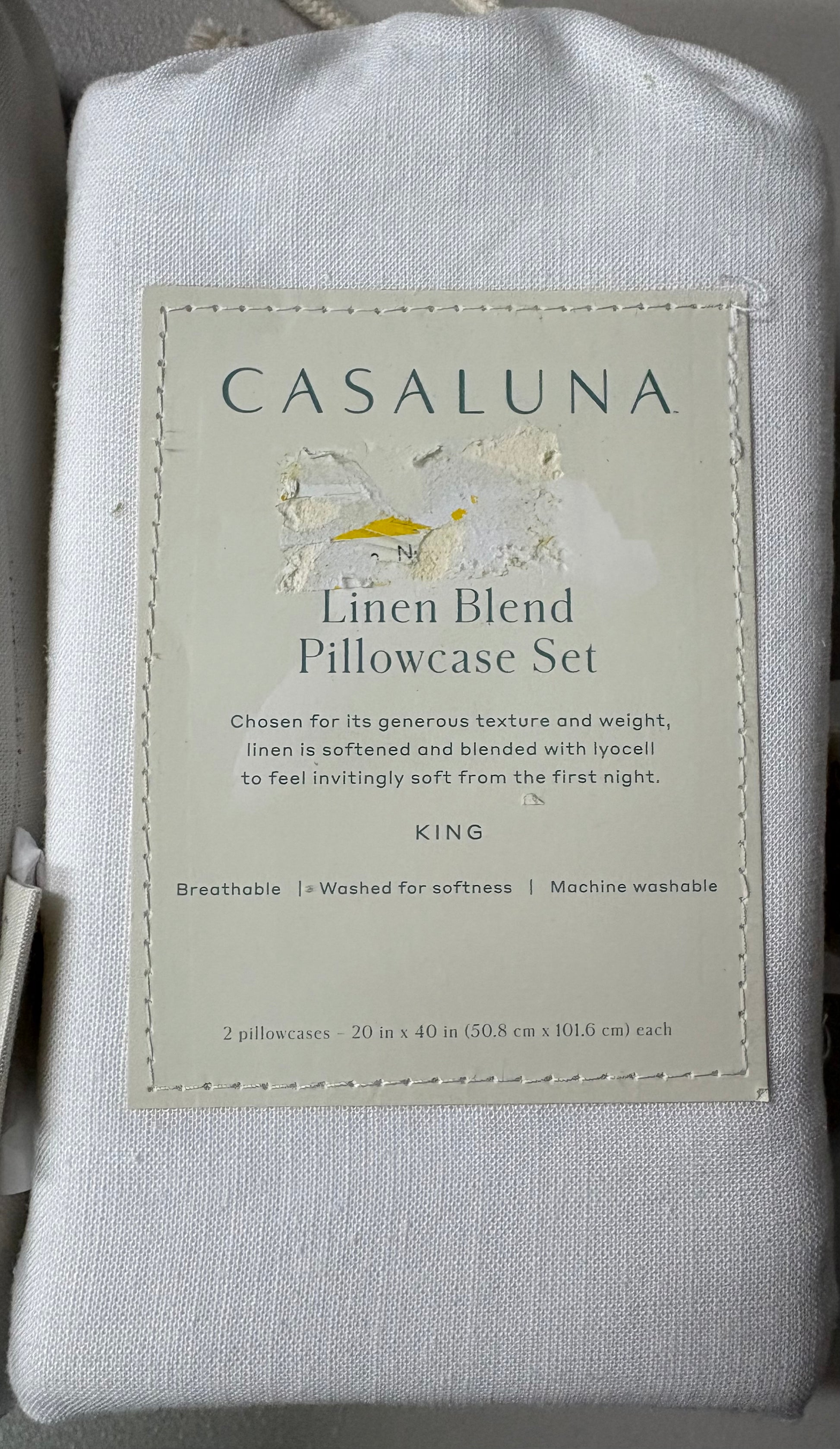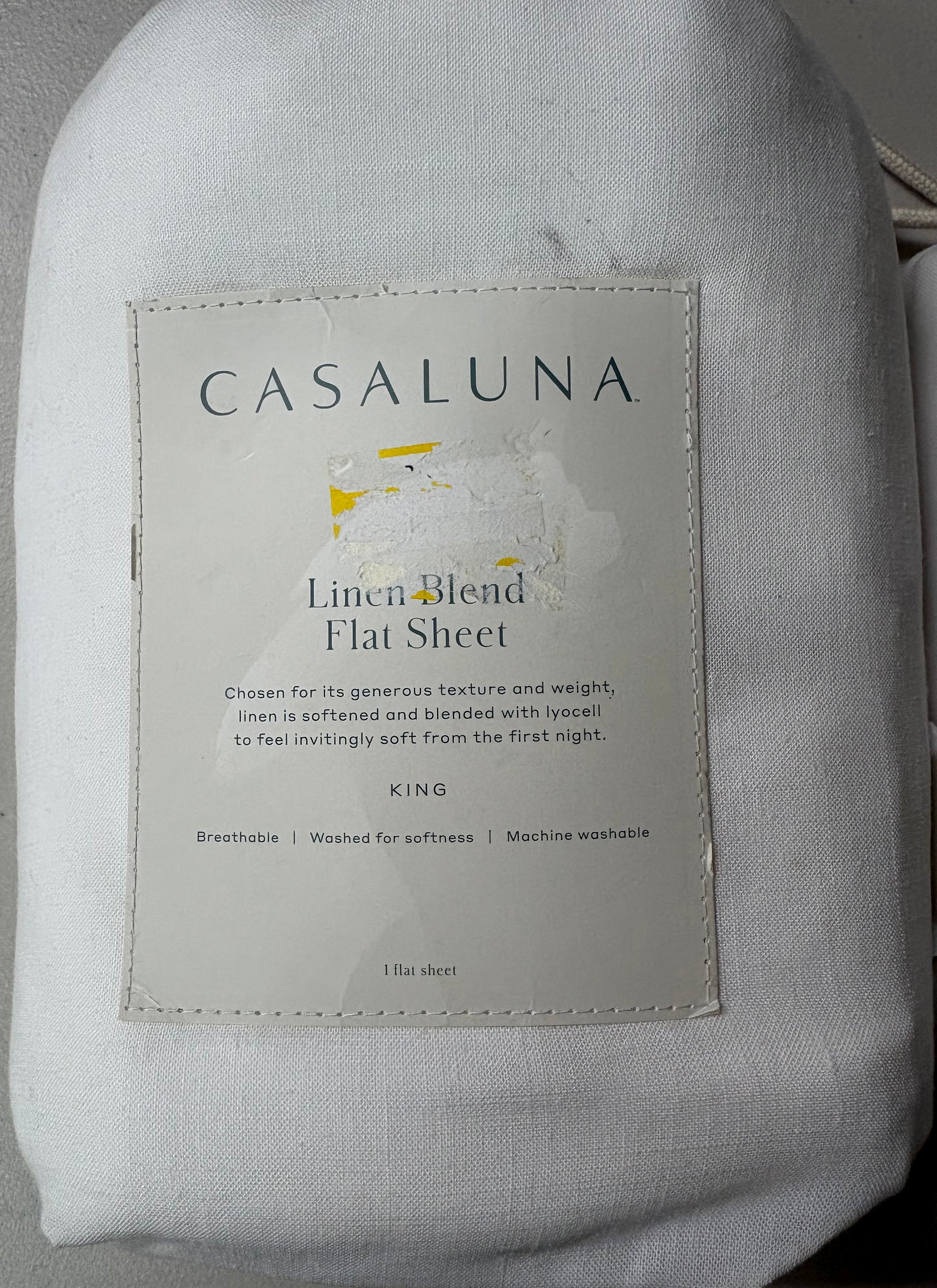 New with tags Casaluna King Linen Blend Sheet & Pillowcase Bundle in Fresh White. Bundle includes one king linen blend flat sheet, and one set of two linen blend king pillowcases. Linen & Lyocell Blend. No longer sold in stores/online.