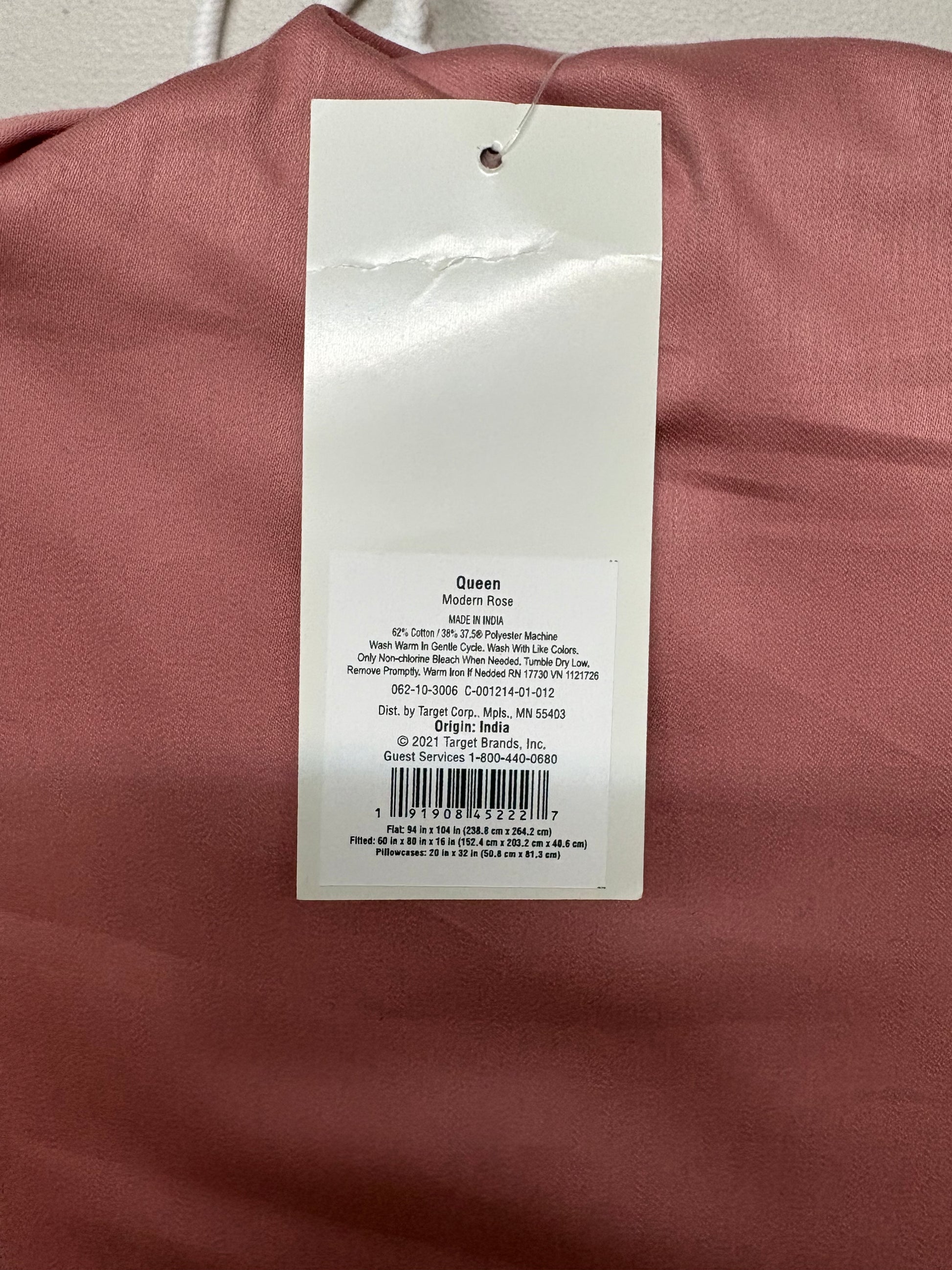New with tags Casaluna Queen Cotton Blend Sheet Set in Modern Rose. Set includes one flat sheet, one fitted sheet, and two matching standard pillowcases. No longer sold in stores/online.