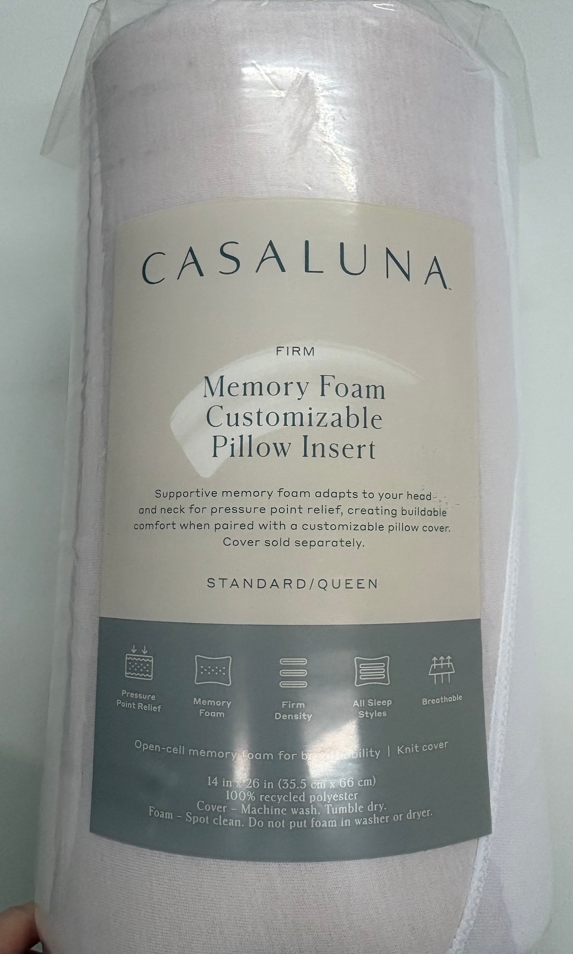 New with tags Casaluna Standard/Queen Customizable Memory Foam Pillow Insert in Firm. No longer sold in stores/online.