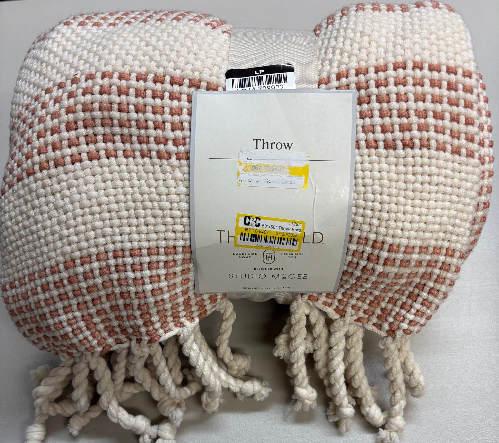 New with tags Threshold Studio McGee 50”x60” Fringe Throw Blanket in Cream/Terracotta.