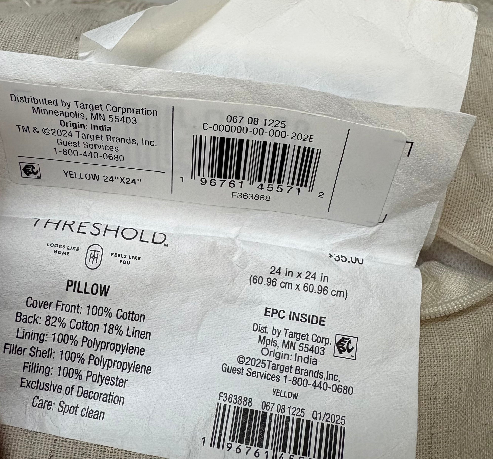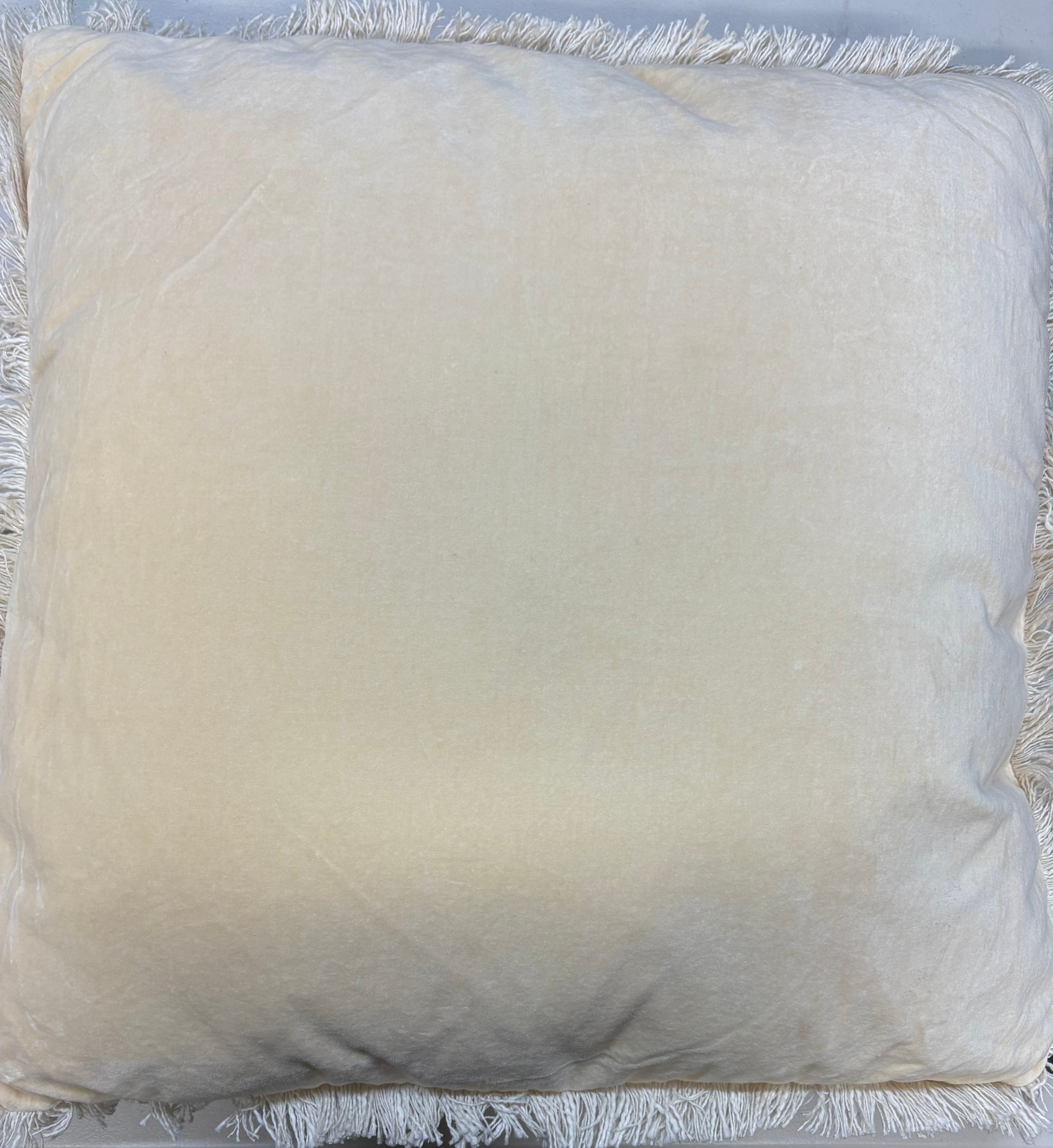 New with tags Threshold 24”x24” Oversized Velvet Fringe Throw Pillow Set in Yellow. Set includes two matching 24”x24” throw pillows. Color is ivory with a slight yellow hue.