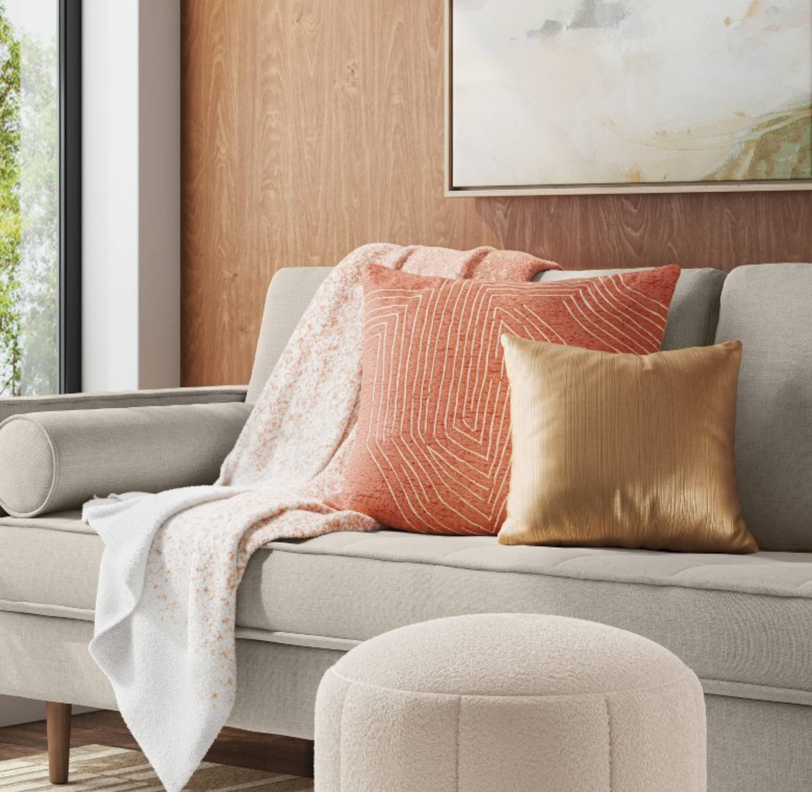 New in packaging Threshold 24"x24" Oversized Geometric Patterned Metallic Embroidered Velvet Square Throw Pillow in Terracotta.
