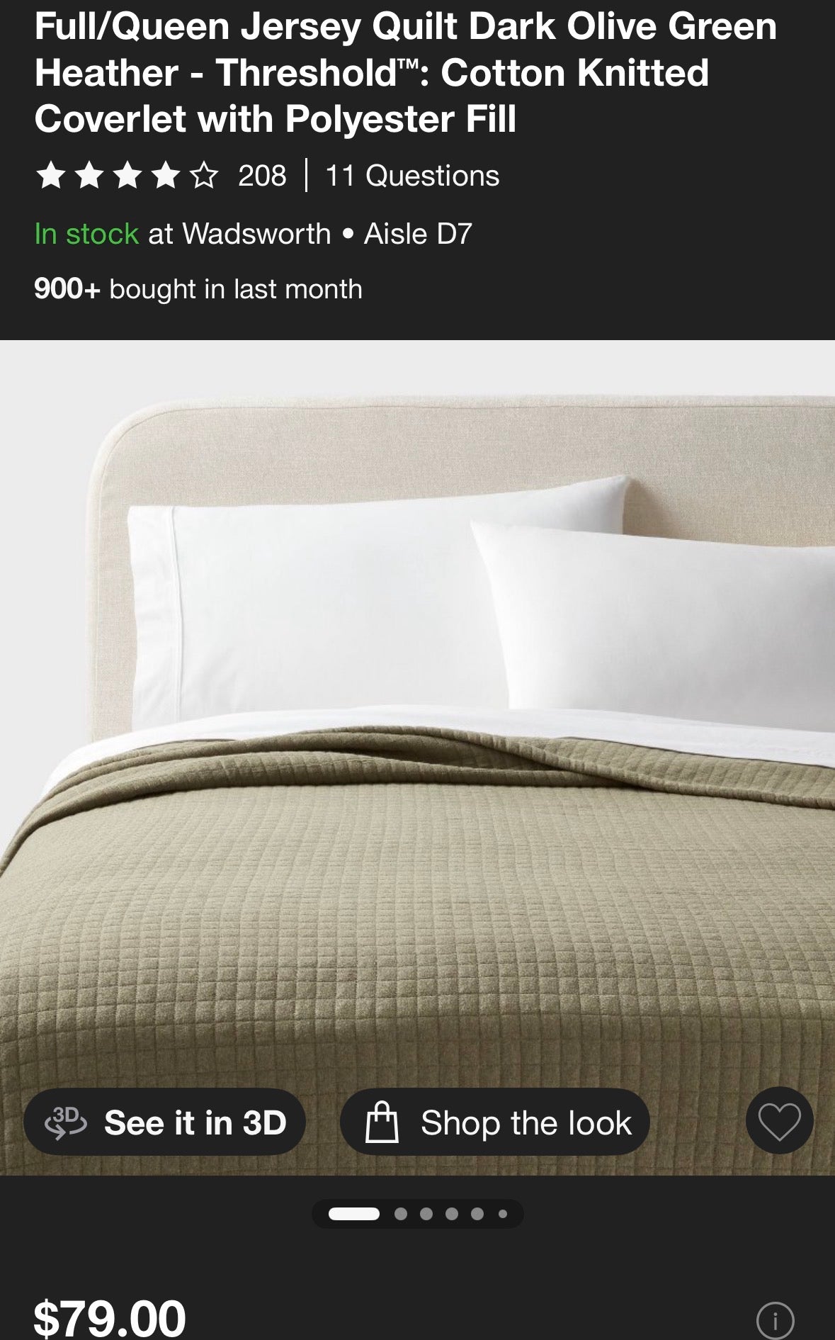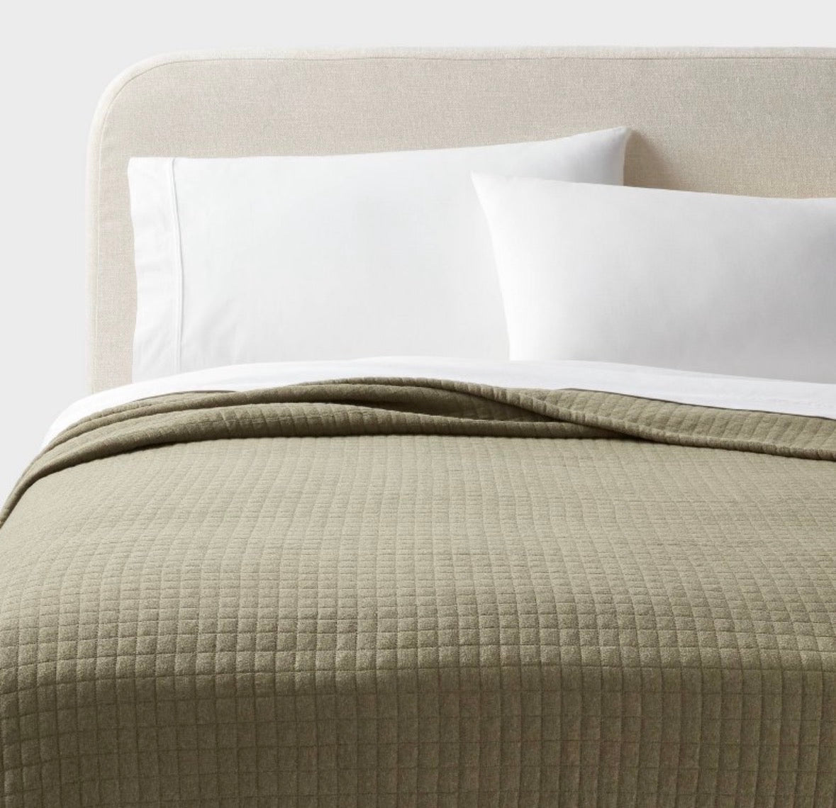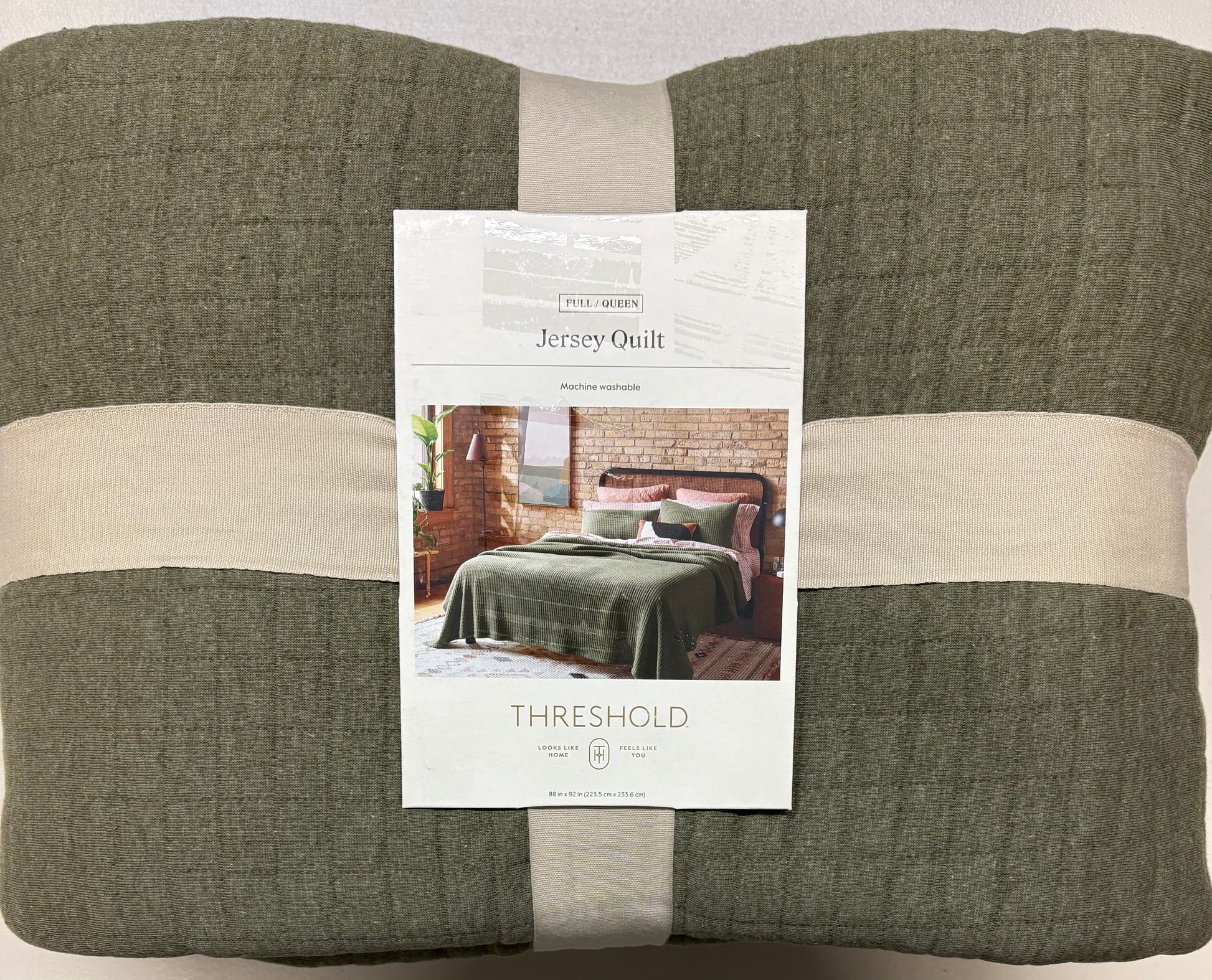 New with tags Threshold Full/Queen Jersey Quilt in Olive Green Heather.