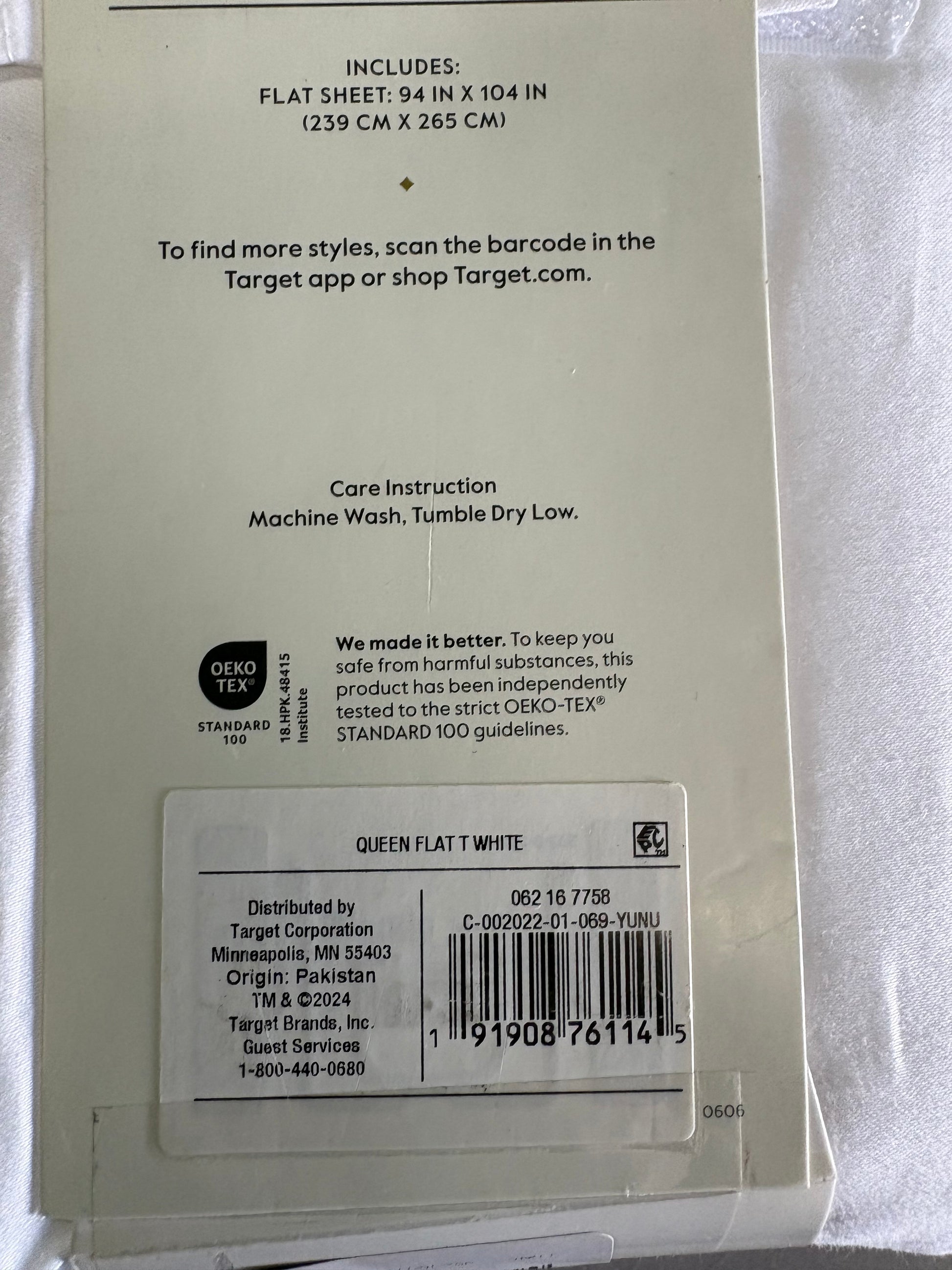 New with tags Threshold Queen Performance Flat Sheet in White. 100% Cotton, 400 thread count.
